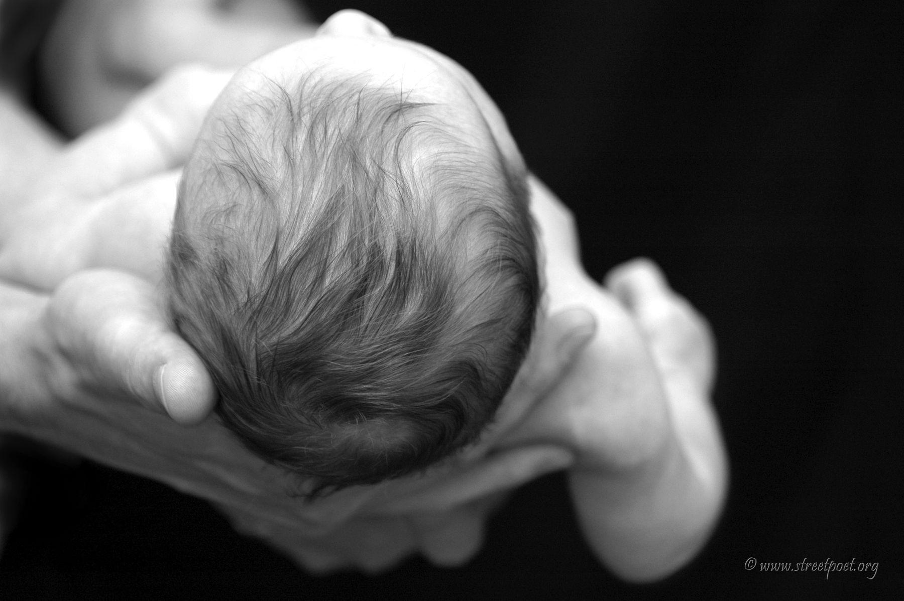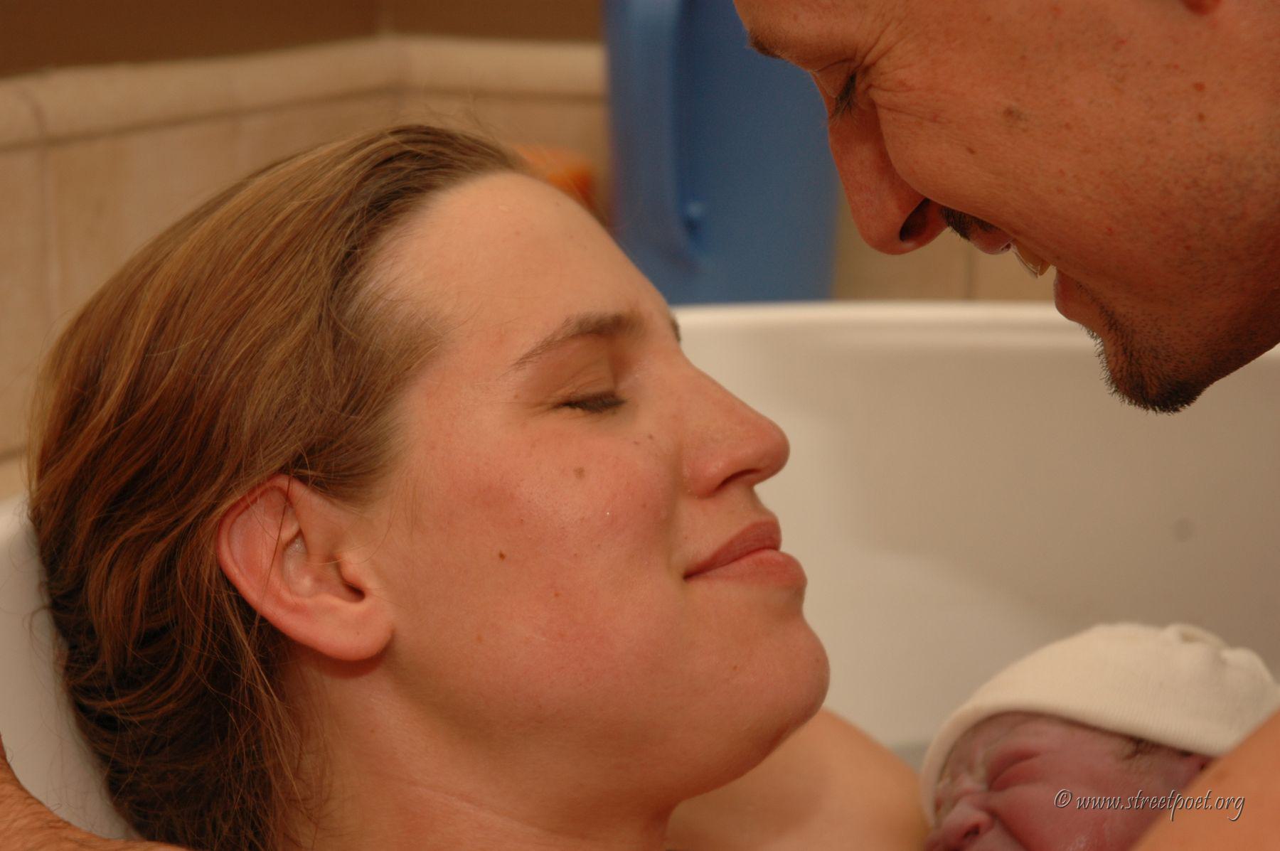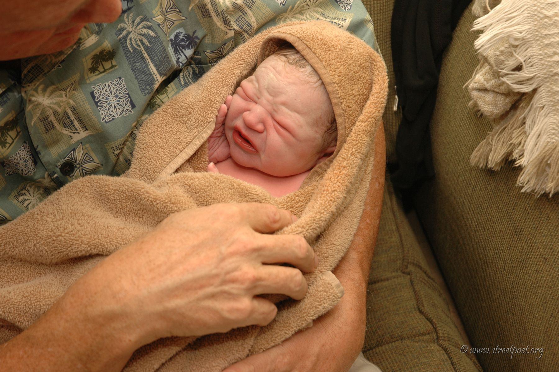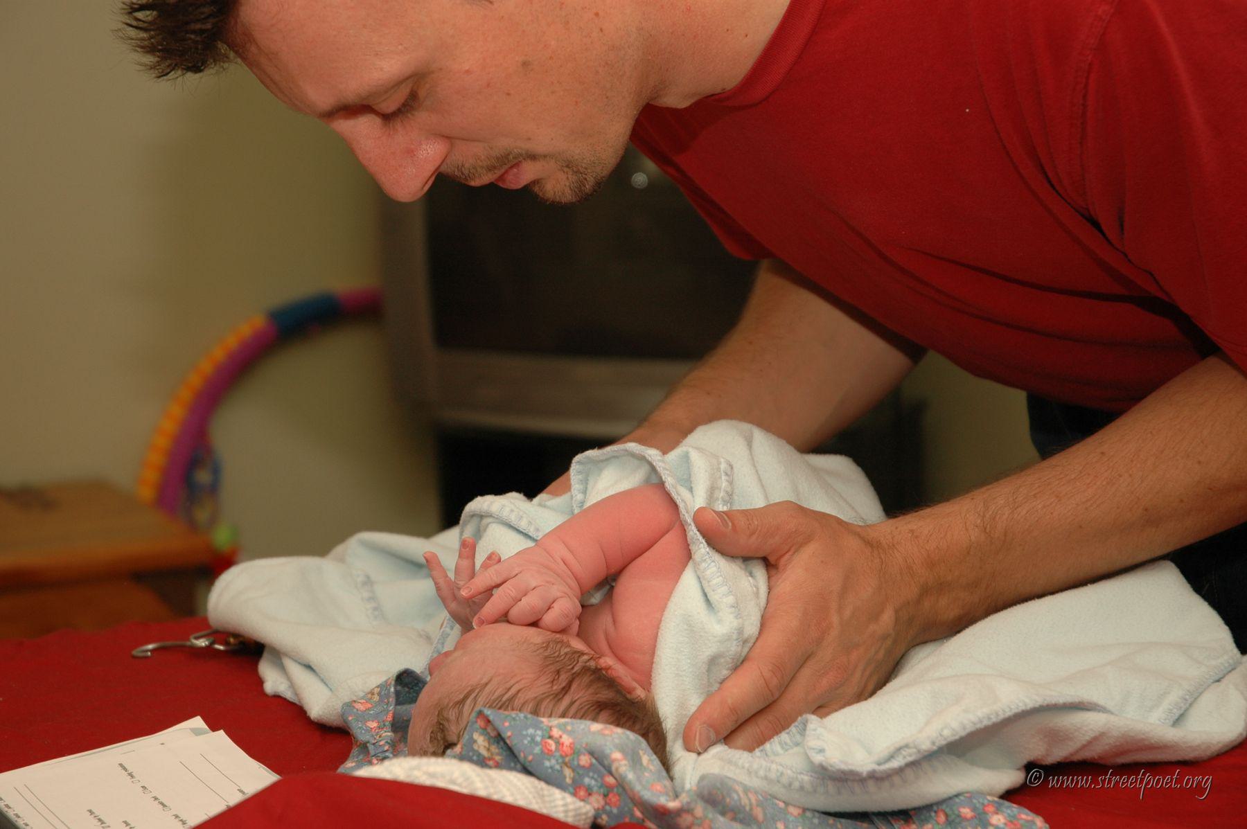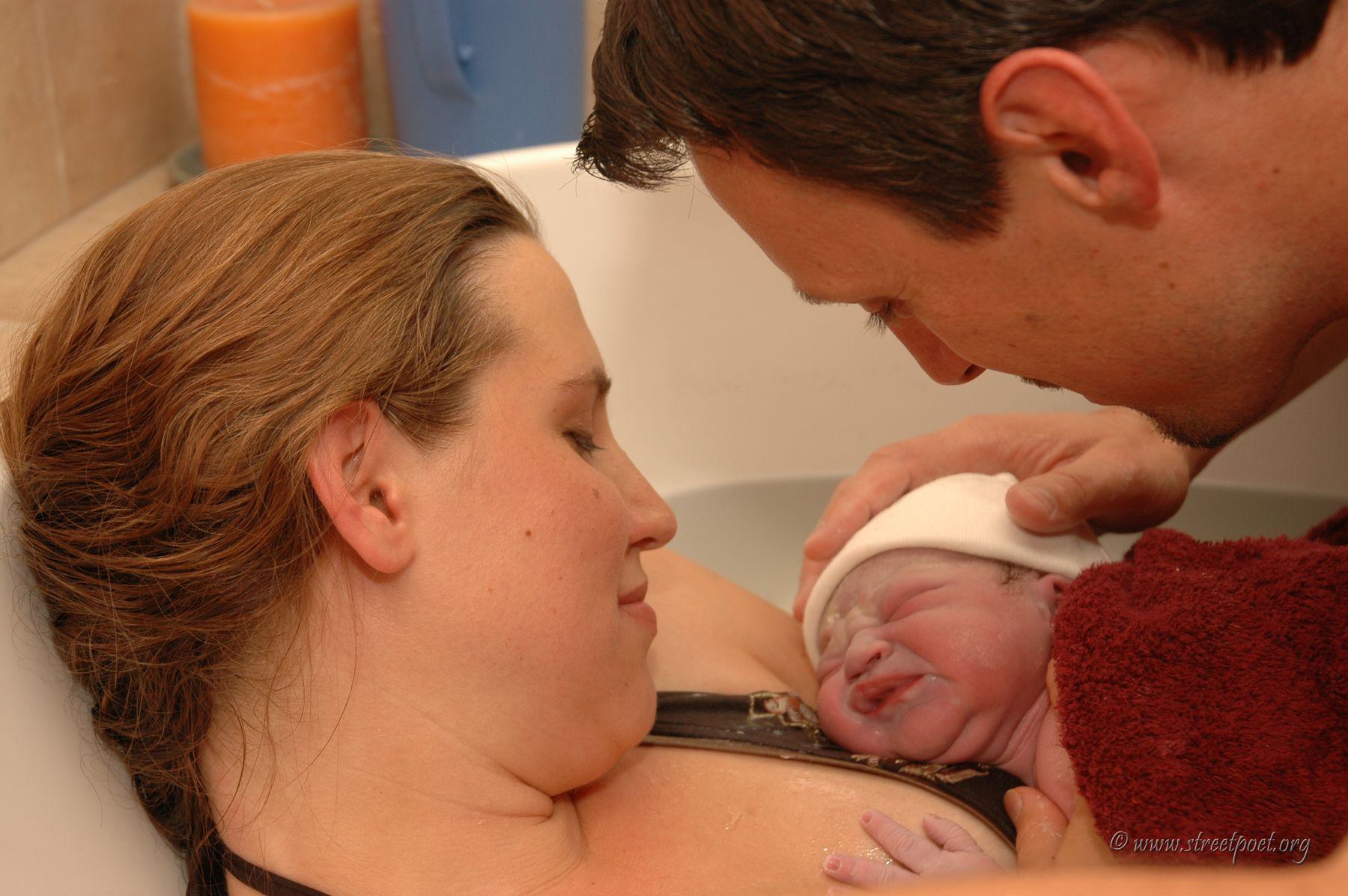Daddy brought him from the water into Mommy's hands.