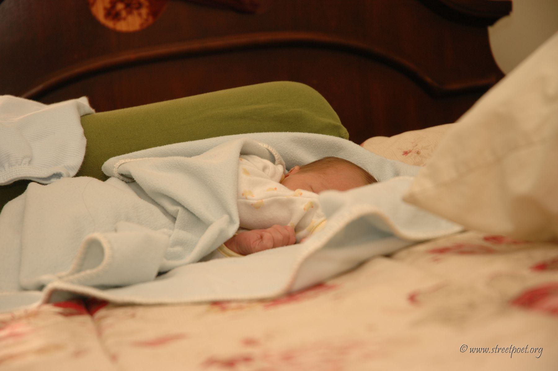 Jerome's picture of Ian sleeping on Mommy and Daddy's bed.