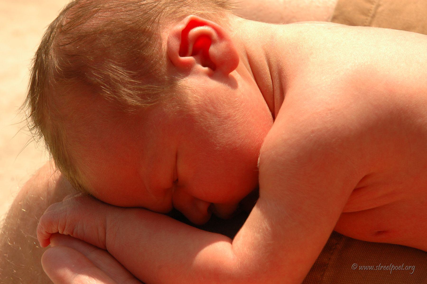 First sunbath in Daddy's arms.