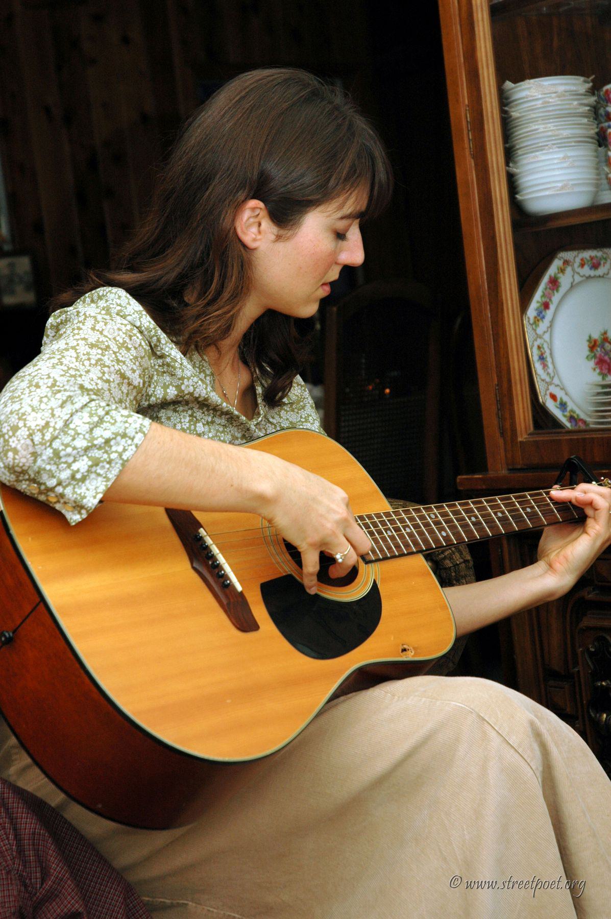 Karen playing the guitar on Thanksgiving 2005