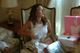 Donna trying on her wedding dress.