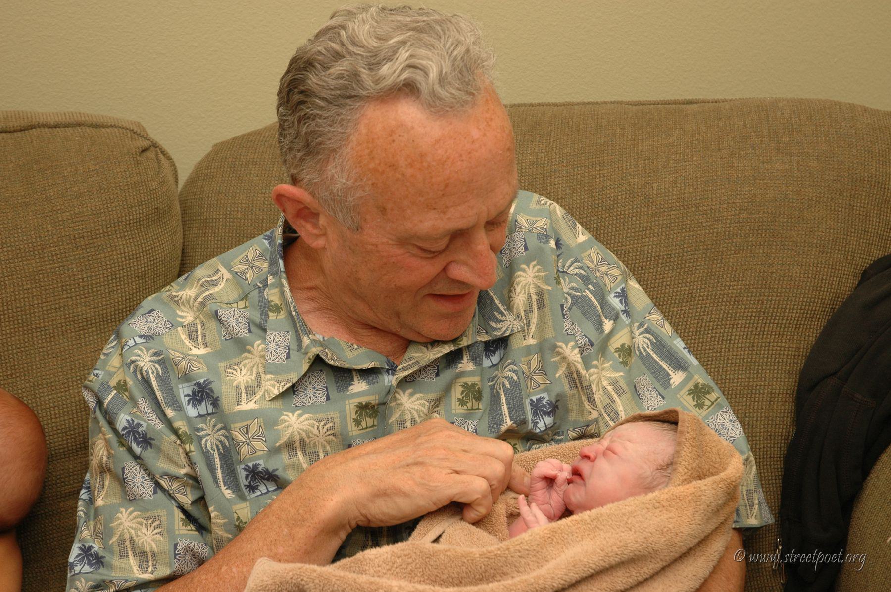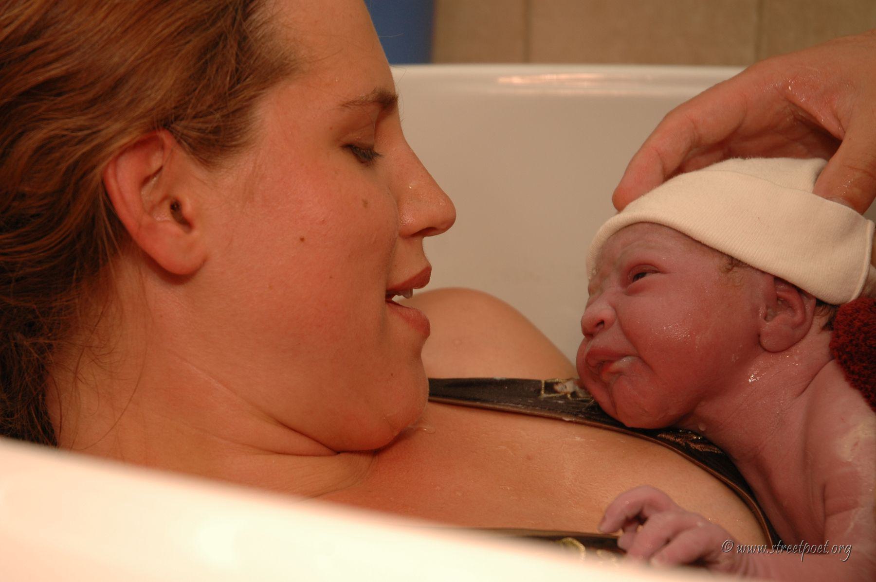 Daddy brought him from the water into Mommy's hands.