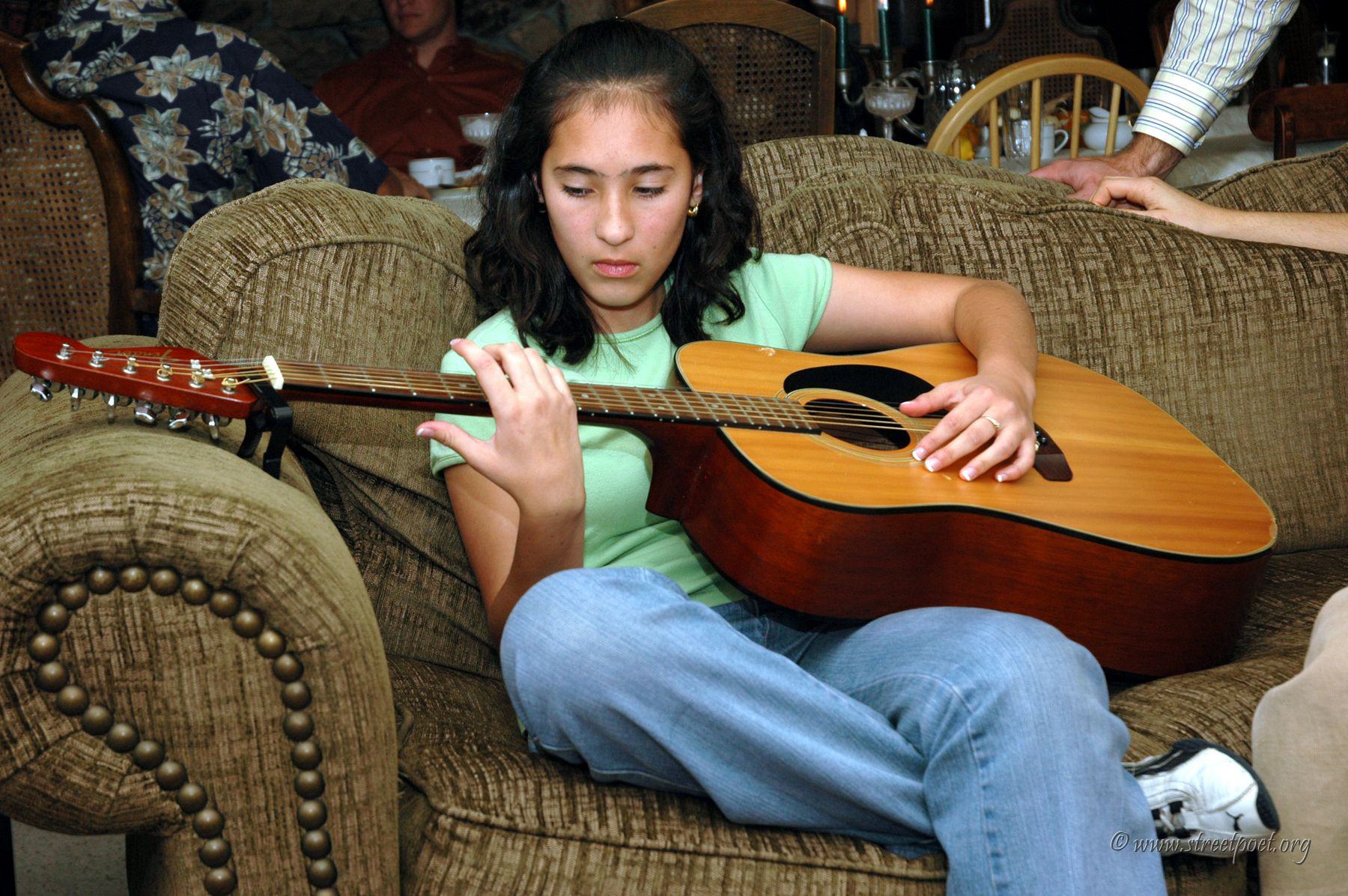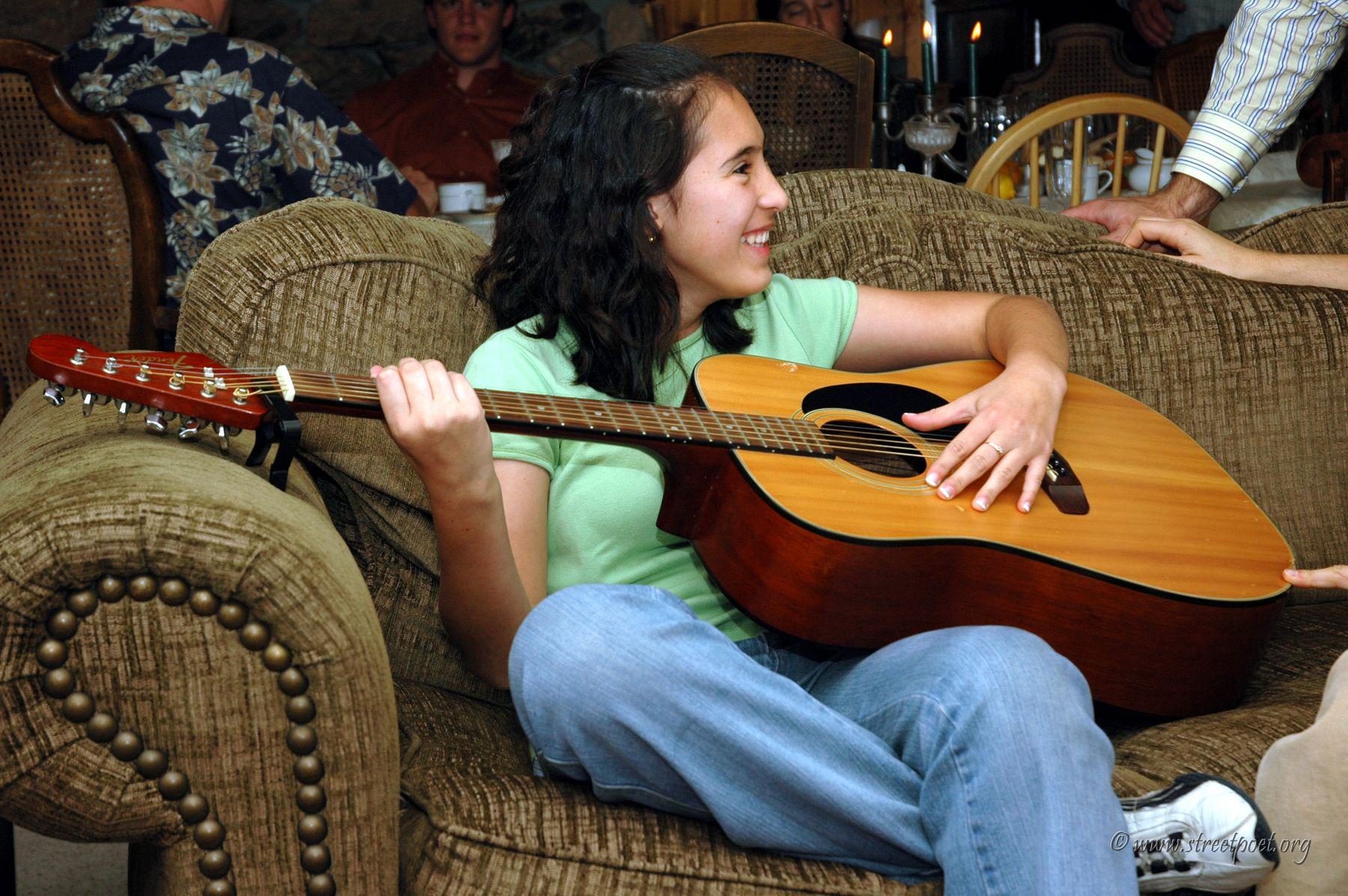 Karen playing the guitar on Thanksgiving 2005
